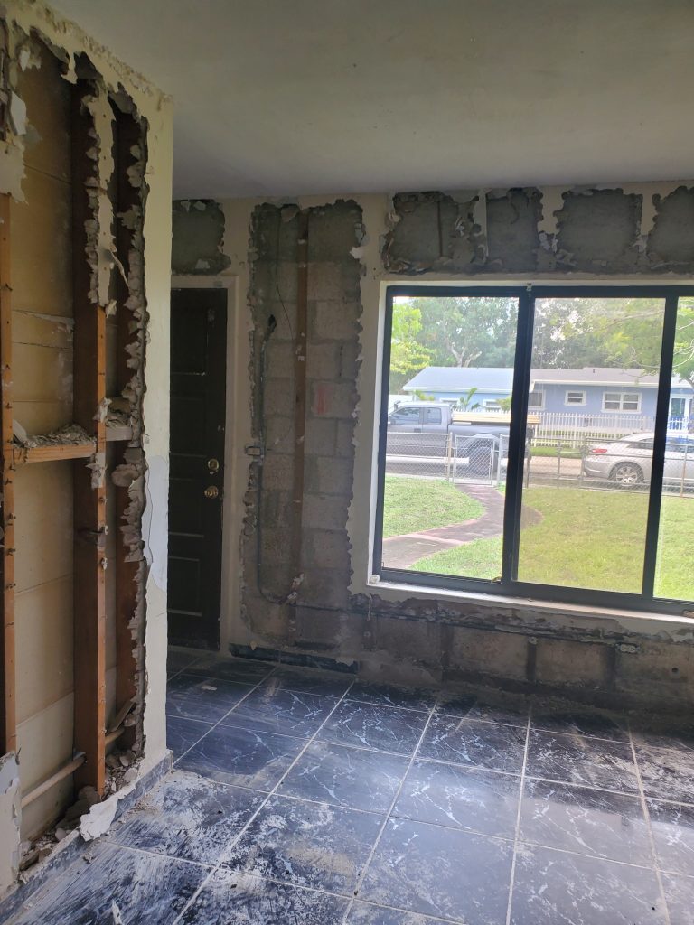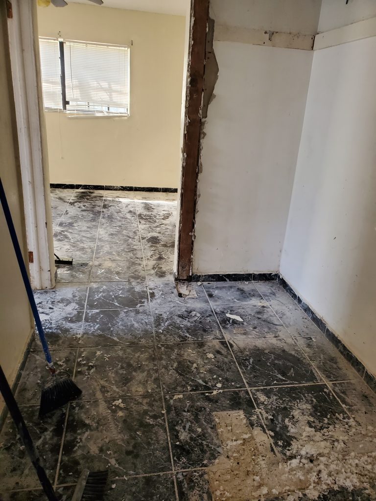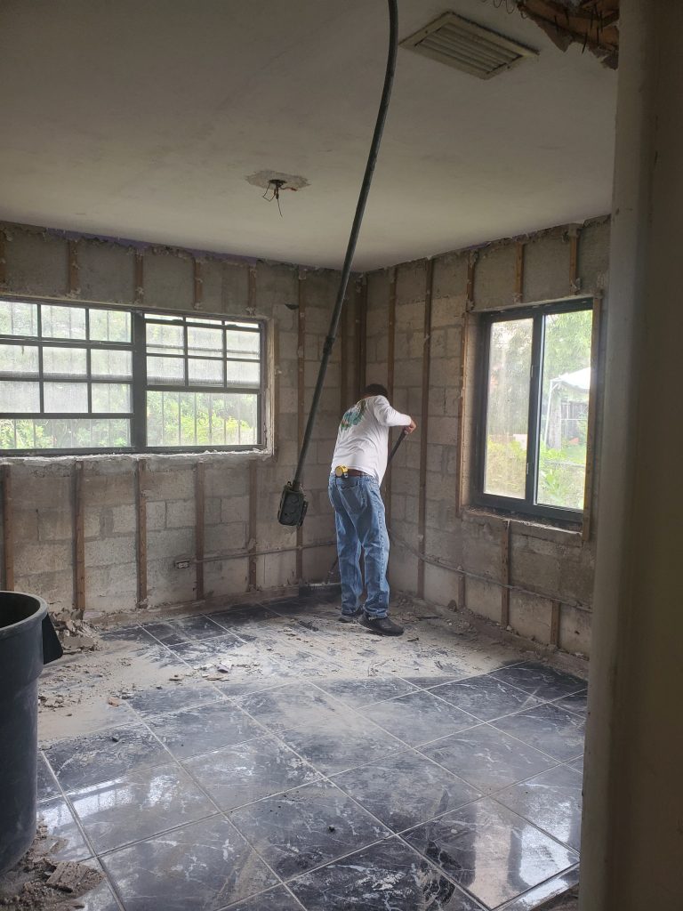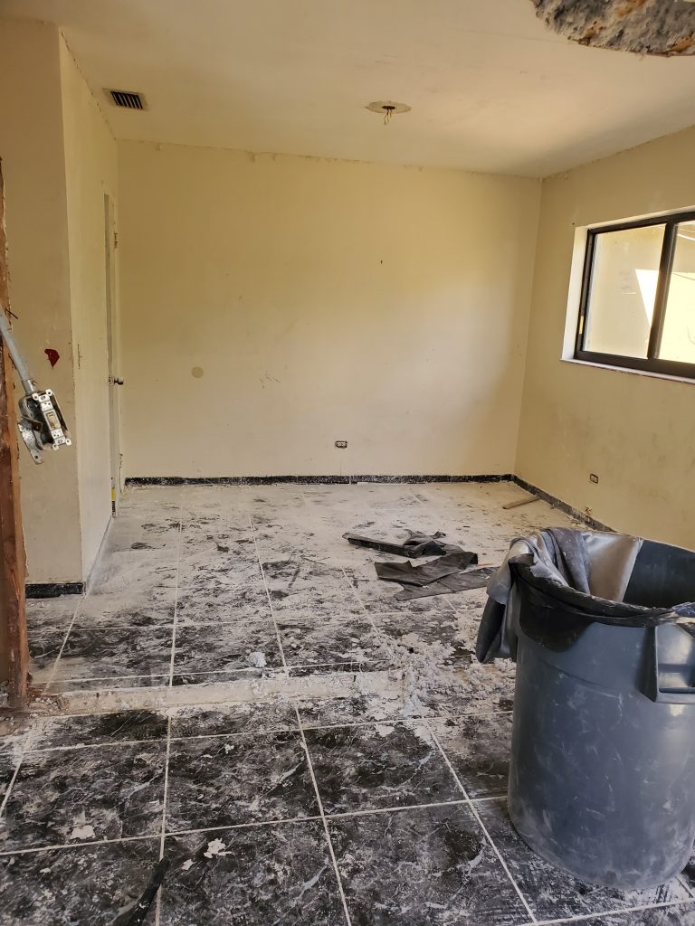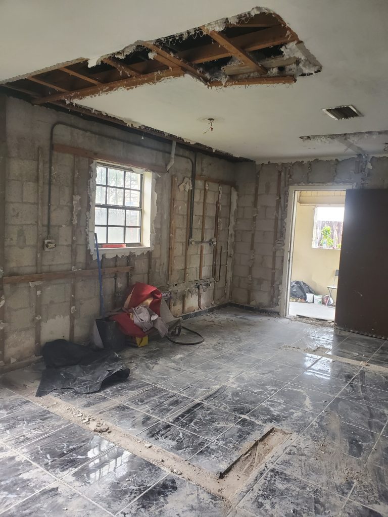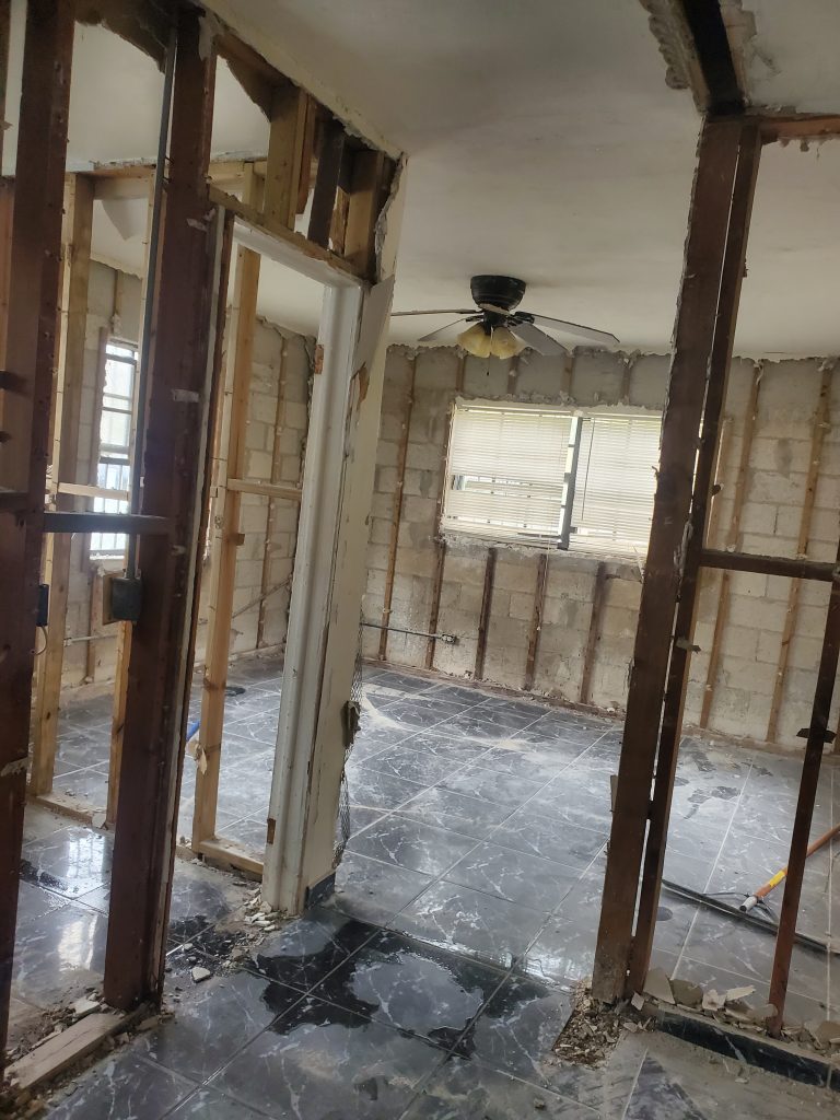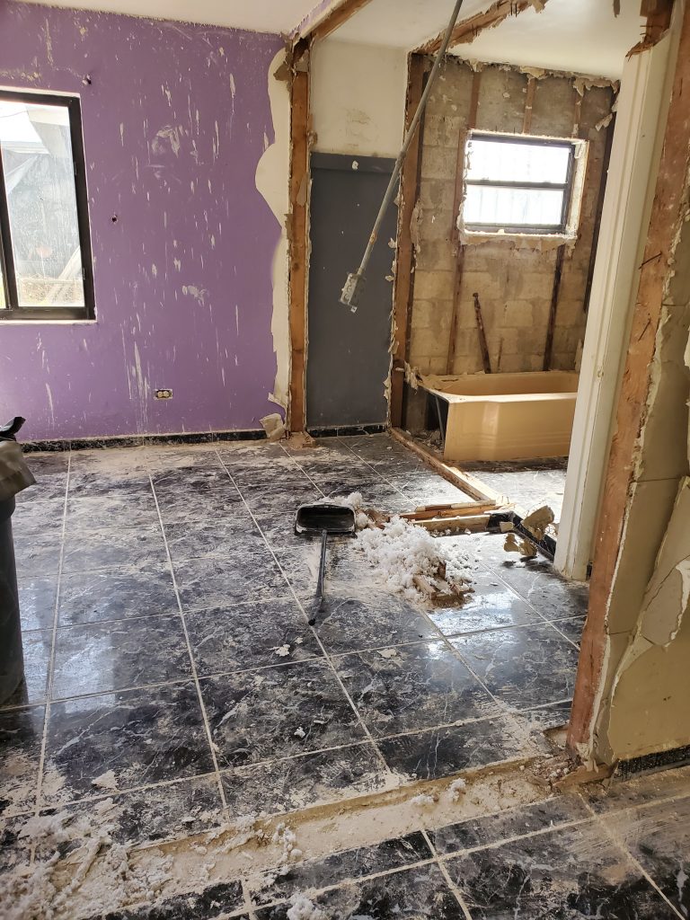 Remodelación completa de una vivienda desde cero, Demolición, Reparación del techo (ceiling) con madera nueva e insulación. Cambio de panel y electricidad nueva. Piso, plomería, baños, distribución del espacio y pintura, todo nuevo a petición de los deseos del cliente.